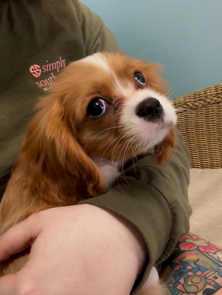 I always imagined myself with a big dog. Something fluffy and sweet and protective. I liked the idea of a pug, but I’d heard how unethical it is to breed them so I wrote off the only small dog I ever wanted. I had no real plans to get any other pet, considering our two cats already felt like a handful. Our life felt complete as it was. But my husband and I suddenly started coming across articles and videos about how sweet, gentle, and intelligent Cavalier King Charles’ are. How they’re often used as emotional support/service dogs and are fiercely loyal, but still friendly. I liked the sound of that, despite having no plans to actually get one anytime soon. We both shoved the idea to the back of our minds. We’re too busy, we thought.