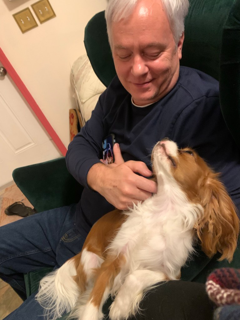 The next Saturday, as we drove past the pet store, I noticed that written in curly light blue letters on the chalkboard was “Cavalier King Charles.” Without thinking, I pulled over. My husband, who was always more of the “We should get a dog,” person out of the two of us said “We’ll just look.” I asked, “What if there’s a dog in there that’s perfect?” He laughed, saying there’s no such thing as perfect, but we still went in together determined not to walk out with a dog. Just looking. As my parents later said, “Famous last words.”