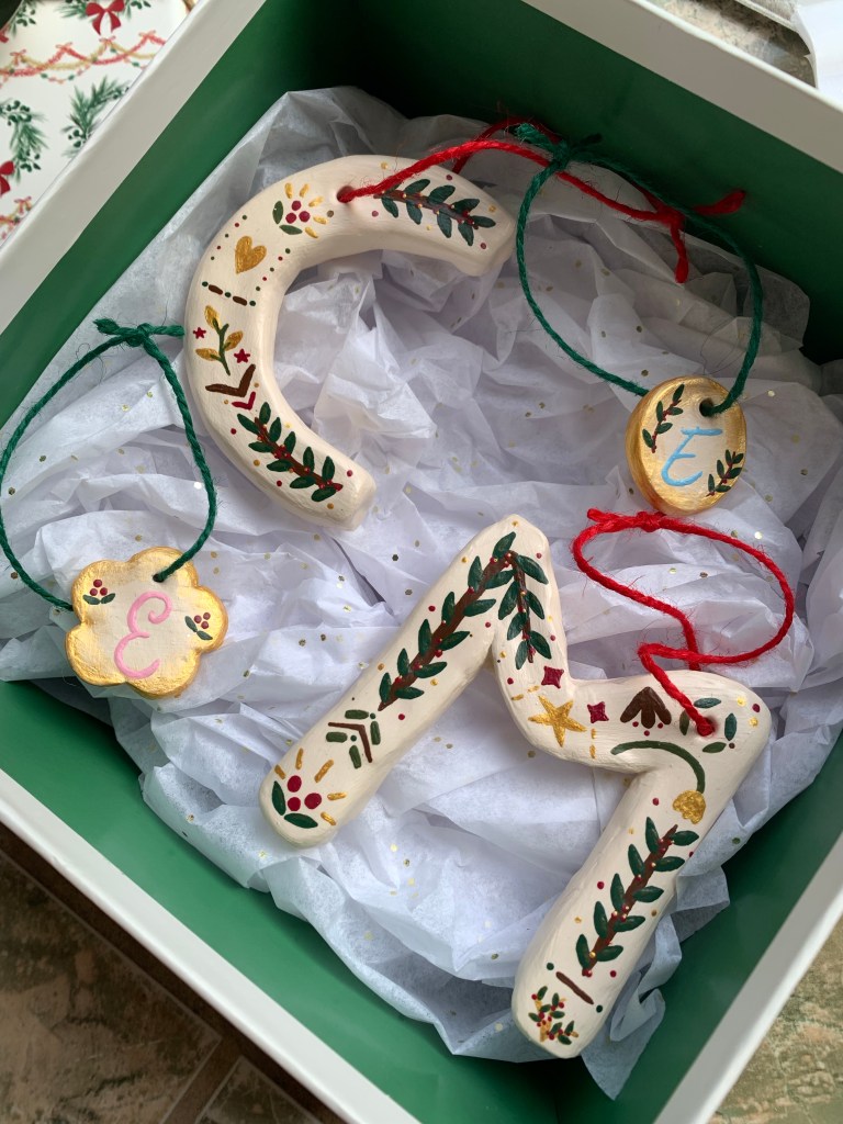 I’ve been in an air dry clay phase this year, so I handmade my friend a set of ornaments for her and her family.